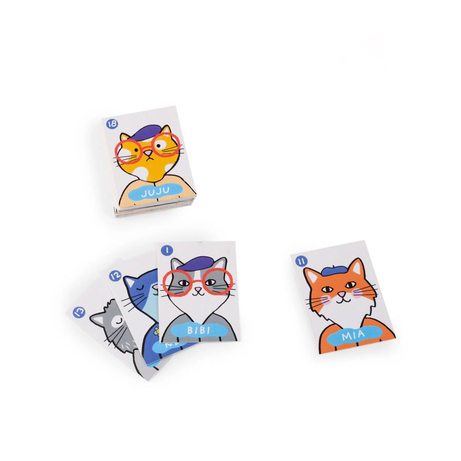 Sii intelligente ponendo al tuo avversario le domande giuste per smascherare quanti più personaggi possibile. Gioco modulare in legno dalla collezione Les Loufoques con 40 carte illustrate (famiglia di gatti sul fronte e cani sul retro). 2 giocatori. Dimensioni: 27 x 7 x 23 cm