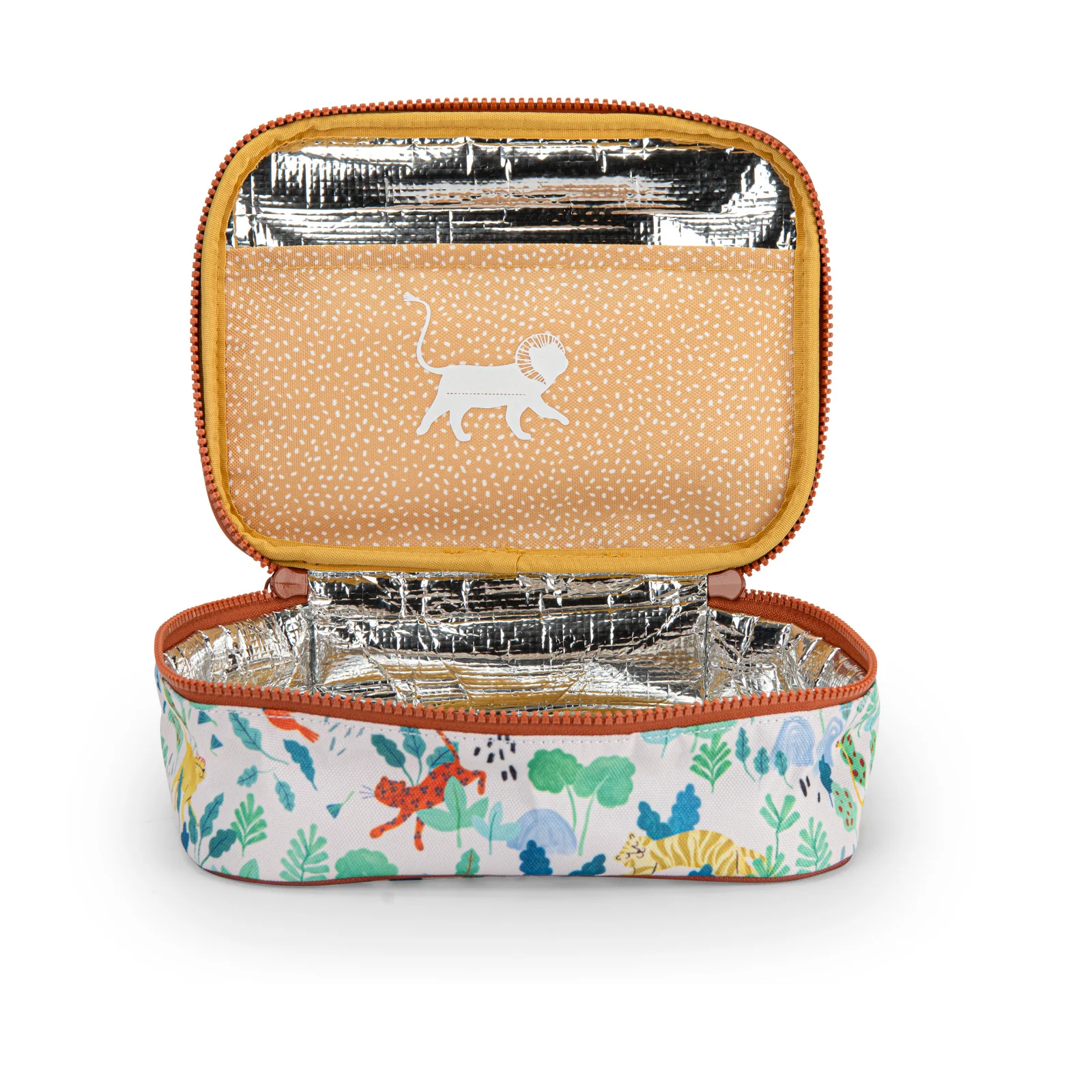 Compatta e facile da portare in giro, la borsa per il pranzo isolata con illustrazioni della collezione La foresta Mawa è perfetta sia per le piccole uscite che per le grandi avventure. Il suo divisorio interno rende facile infilare posate e tovaglioli, lasciando molto spazio per un pasto. Misure: 22 x 16 x 7 cm