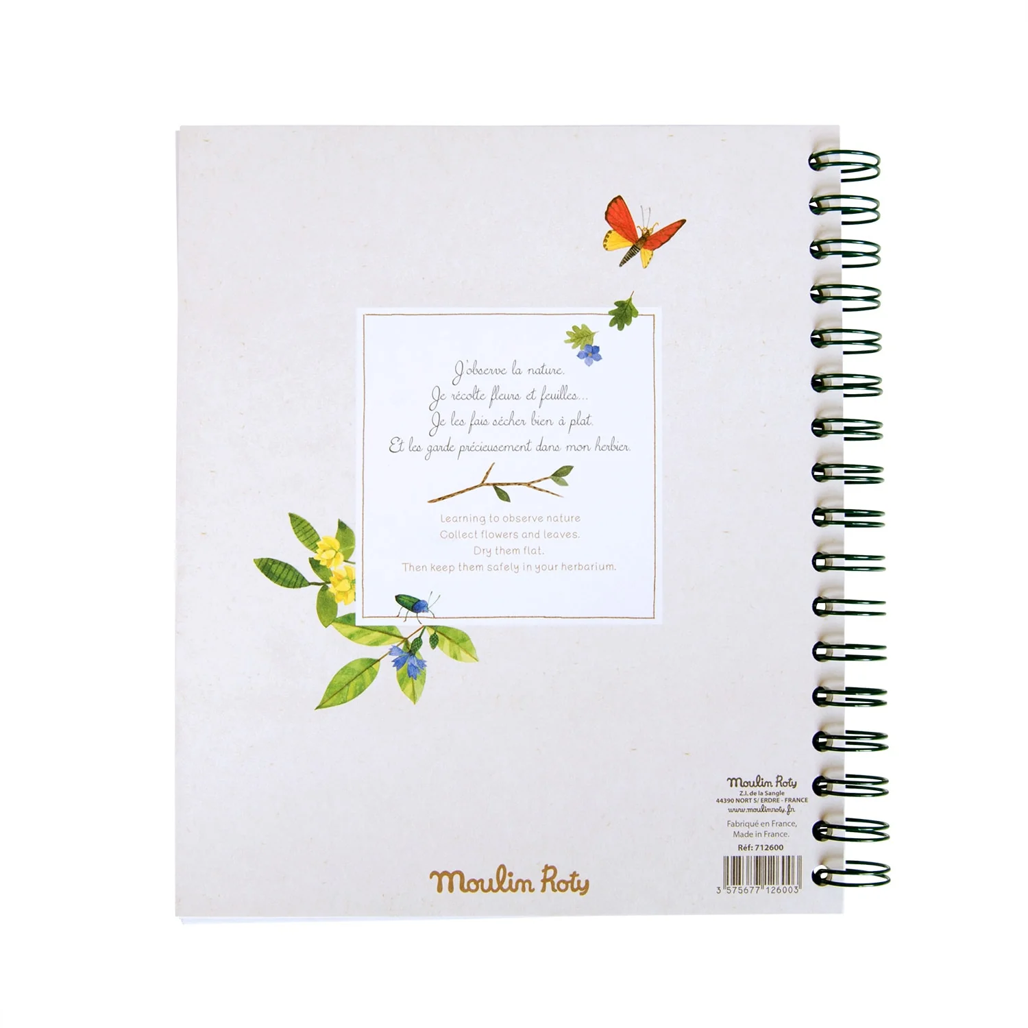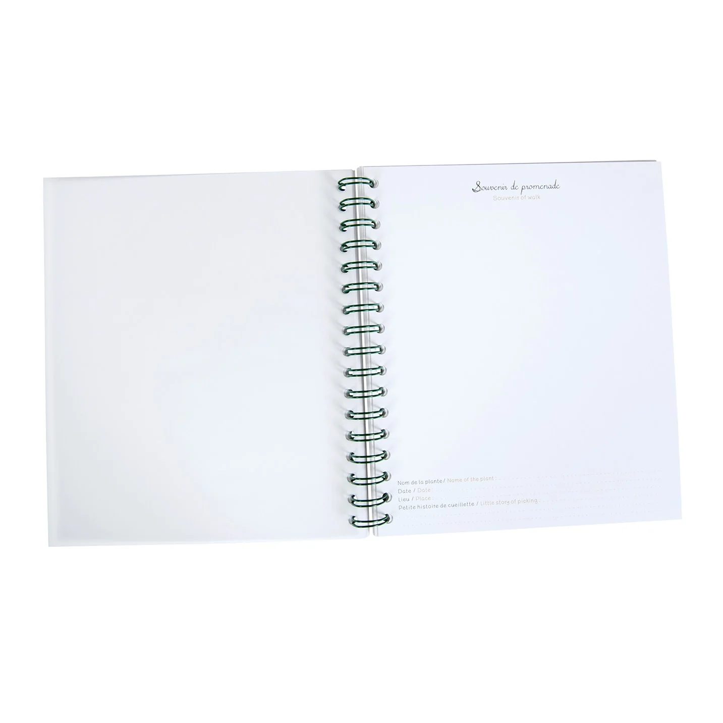 Quaderno a spirale per disegnare piante, e conservare con cura le foglie del giardino e i fiori colti durante la passeggiata. Annota il nome della pianta, il luogo, la data e la piccola storia della raccolta per conservarne un ricordo... Dimensioni: 22,5 x 19 cm.