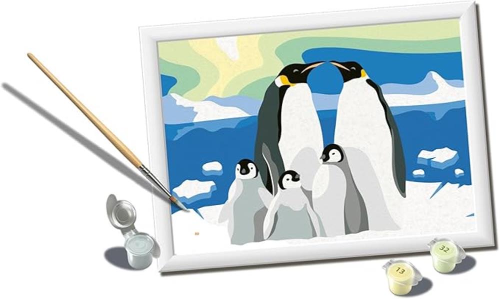 Creart Serie D - La Famiglia di Pinguini di Ravensburger Creart Kids. Un gioco creativo per imparare a dipingere in modo facile ed intuitivo! Grazie all’immagine prestampata con numeri e bordi che indicano il colore da utilizzare, potrai realizzare degli splendidi acquerelli! I colori a base d’acqua sono pronti all’uso ed è incluso anche un supporto per evitare rovesciamenti accidentali. Con la cornice inclusa potrai mettere in bella mostra il tuo capolavoro dove vuoi. Un’attività rilassante che esercita la manualità fine e la concentrazione.