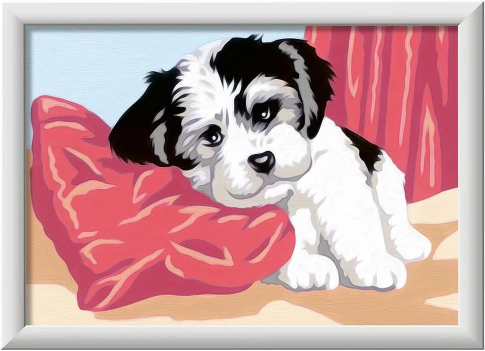 Creart Serie E - Cucciolo Affettuoso di Ravensburger Creart Kids. Un gioco creativo per imparare a dipingere in modo facile ed intuitivo! Grazie all’immagine prestampata con numeri e bordi che indicano il colore da utilizzare, potrai realizzare degli splendidi acquerelli! I colori a base d’acqua sono pronti all’uso ed è incluso anche un supporto per evitare rovesciamenti accidentali. Con la cornice inclusa potrai mettere in bella mostra il tuo capolavoro dove vuoi. Un’attività rilassante che esercita la manualità fine e la concentrazione.