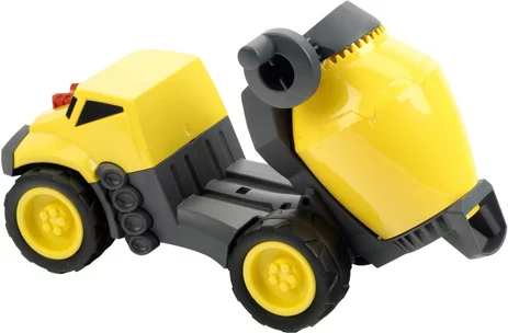 Quale piccolo costruttore non sogna di avere la propria betoniera? E se riesce persino a far girare il tamburo, il divertimento è assicurato. Basta caricare la sabbia nel tamburo attraverso la tramoggia, girare la manovella e via! Anche i bambini più piccoli possono azionare la manovella e, grazie alla sua solida costruzione, questo potente veicolo diventerà presto un compagno affidabile e fedele per i piccoli costruttori. Scala 1:24. Dimensioni: 23 x 14 x 11 cm.