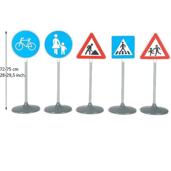 Il set include cartelli che segnalano piste ciclabili e pedonali, attraversamenti pedonali, lavori in corso e pericolo bambini. I cartelli stradali sono alti ben 73 centimetri, assomigliano a quelli veri e sono quindi adatti per l educazione stradale. Questo utile set aiuta a familiarizzare i bambini con le regole del codice stradale fin dalla tenera età. Misure circa 25 cm x 25 cm x 73 cm.