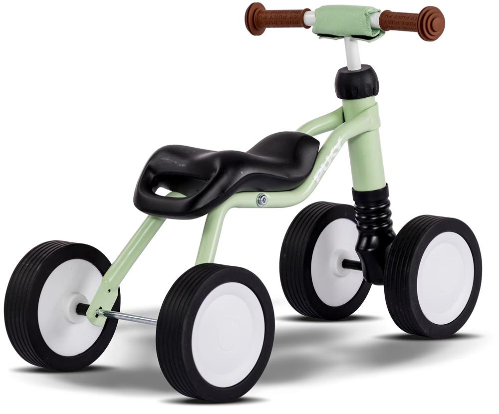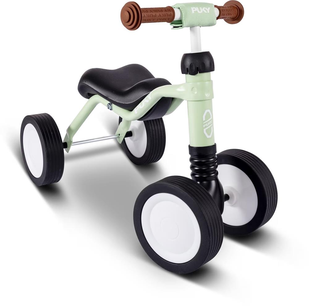 PUKY WUTSCH PASTELL GREEN. Divertimento e movimento per interni ed esterni. Il PUKY WUTSCH stimola i principianti, anche all'aperto. L'asse anteriore oscillante del PUKY WUTSCH consente un angolo di sterzata piatto e stabilizza il veicolo in caso di piccoli ostacoli. I bambini da 1,5 anni in su, che sanno già camminare in sicurezza, possono quindi muoversi in sicurezza anche su superfici piane come marciapiedi o parchi giochi. L'asse anteriore oscillante del PUKY WUTSCH favorisce inoltre l'ulteriore sviluppo del senso dell'equilibrio, rendendolo il logico successore del PUKYLINO.