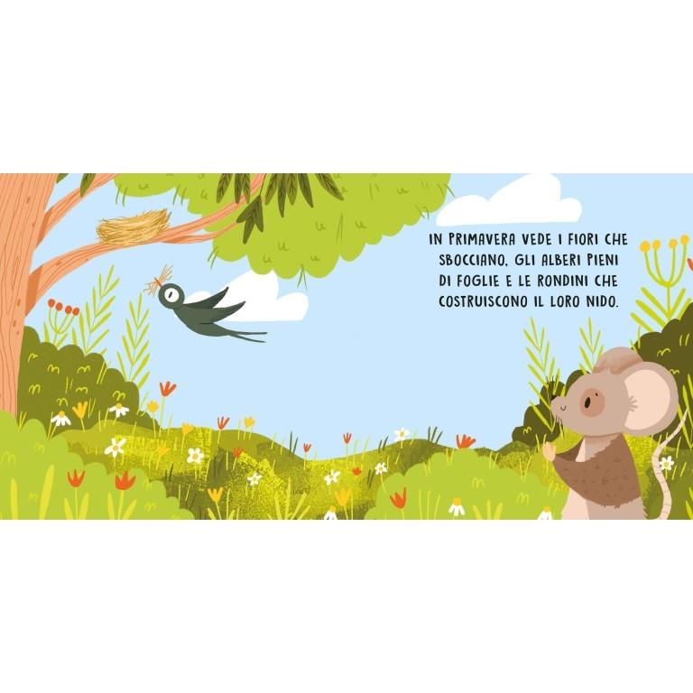 Le quattro stagioni. Un libro sonoro con illustrazioni semplici e delicate e sei deliziosi suoni della natura. Non c’è bisogno di premere un pulsante: basta girare la pagina per far iniziare i suoni! Scopri come cambia la natura con l’alternarsi delle stagioni insieme al topolino protagonista di questa storia e ascolta i suoni dei diversi elementi naturali. Pagine: 12. Autore: G. Pesavento & N. Aghekyan