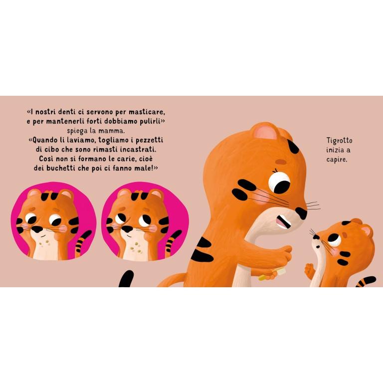 Mi lavo i denti. Pensato per accompagnare i bambini nella scoperta di questa routine quotidiana, il libro utilizza un linguaggio chiaro e adatto alla loro età. Le illustrazioni e la narrazione incoraggiano i più piccoli a seguire l’esempio di Tigrotto, trasformando l’igiene orale in un’abitudine semplice e naturale. Questo libro è stato scritto con il supporto di Valentina Paolucci, pediatra, per offrire ai genitori uno strumento utile e affidabile per introdurre il tema della cura dei denti in modo sereno e positivo. Lavarsi i denti è un gesto quotidiano importante, ma per i più piccoli può sembrare noioso o difficile da capire. Questo libro racconta la storia di Tigrotto, un cucciolo che non ha voglia di spazzolarsi i denti, fino a quando la sua mamma gli spiega perché è così importante prendersene cura. Attraverso semplici spiegazioni e un approccio giocoso, Tigrotto scoprirà come lavare bene i denti e renderlo un momento piacevole da condividere. Pagine: 20. Autore: G. Pesavento & Ç. Odabasi.