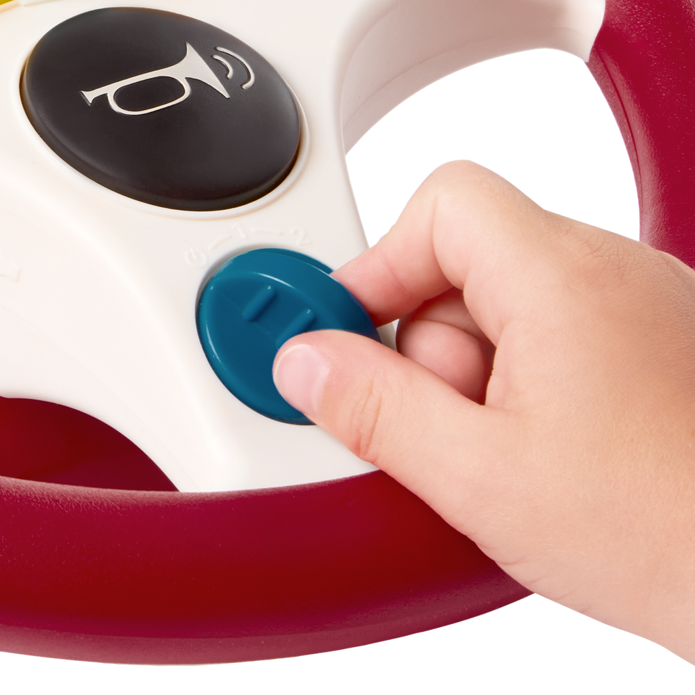 Beep beep! Vroom vroom! Fai finta di guidare un'auto o gioca nella stanza con il volante musicale di B. toys! Questo volante giocattolo offre tantissime funzioni divertenti da esplorare per i piccoli piloti. Accendi la sirena e corri in soccorso, lampeggia con gli indicatori di direzione per far sapere a tutti dove stai andando, suona il clacson per farti strada, ascolta melodie e suoni divertenti e simula dei giri in città. Questo giocattolo per seggiolino auto è perfetto per giocare a guidare insieme agli adulti e, inoltre, migliora la motricità fine e la coordinazione occhio-mano! Richiede 3 batterie AAA, incluse nella confezione.
