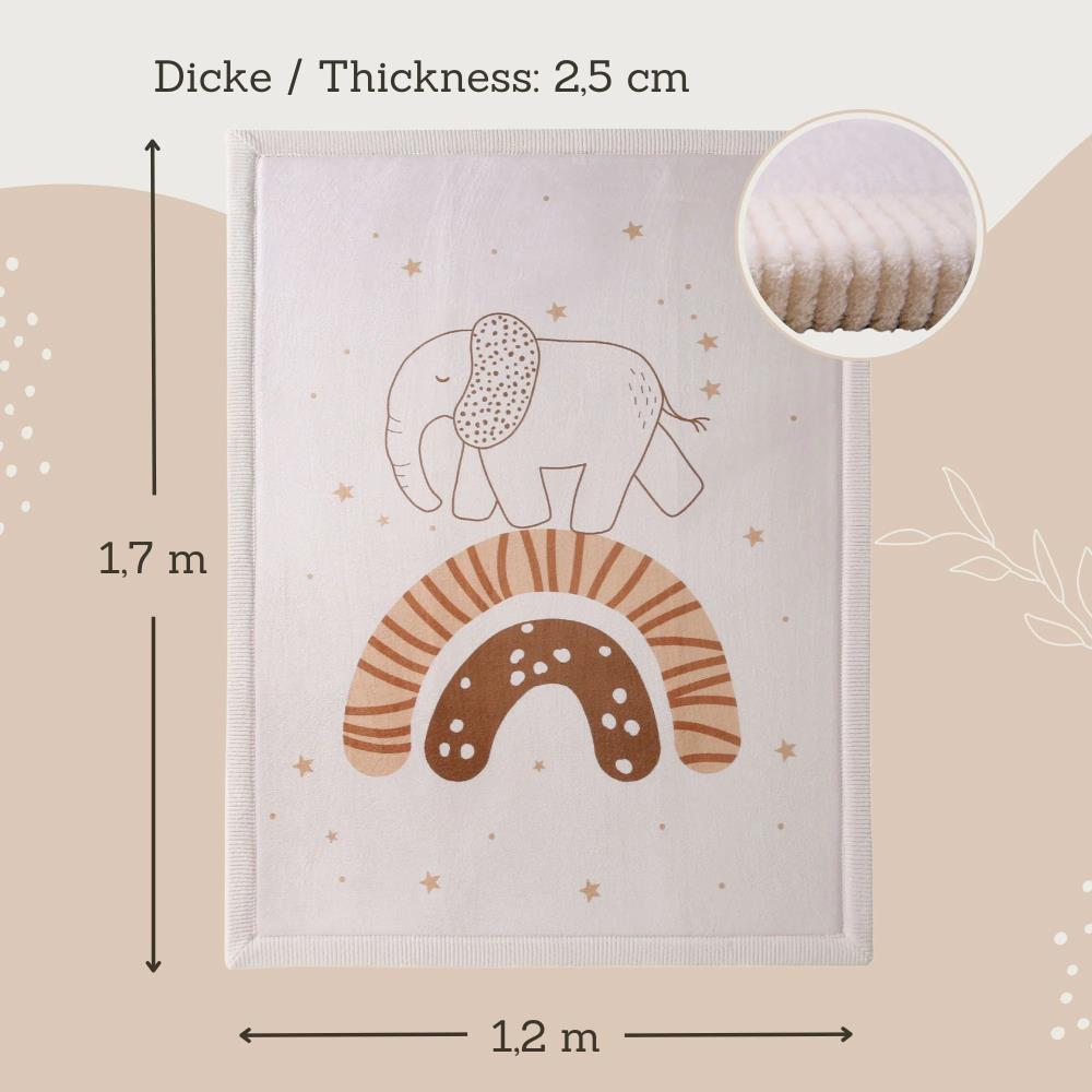 Il tappeto ''Nuvola'' - Arcobaleno per bambini è composto da tre strati: 1. Velluto di corallo per il contatto della pelle più morbido, 2. schiuma di memoria elastica per un gioco confortevole e strisciante, 3. schiena antiscivolo per la protezione contro gli urti quando si cade. A causa delle dimensioni extra di 170 x 120 x 2,5 cm, questo tappeto per bambini è perfetto per strisciare, giocare e yoga e per il fitness a casa. Elegante e giocoso allo stesso tempo - questo tappetino di alta qualità Premium Memory Foam spesso porta stile e calore in qualsiasi soggiorno o camera dei bambini. I colori morbidi del pastello si armonizzano perfettamente con il tuo interno e creano un'atmosfera piena di sicurezza e benessere. La schiuma di memoria premium è di 2 cm di spessore e prende le sue dimensioni più velocemente (entro 1-2 giorni) rispetto alle alternative più economiche. Il tappeto da gioco per i bambini viene consegnato piegato come una coperta e, a differenza dei tappeti striscianti confezionati sottovuoto per i bambini, non ha bisogno di essere stirato. L'imballaggio compresso consente di risparmiare spazio durante il trasporto e ridurre le emissioni di carbonio. Facile da mantenere e igenico - questo tappetino da gioco per i bambini può essere pulito in pochi secondi con un aspirapolvere o un panno umido e sapone. Il soffice tappeto per bambini è lavabile a mano a 30°C e adatto per il riscaldamento a pavimento. Dimensione: 1,7 x 1,2 m; Spessore: 2,5 cm.