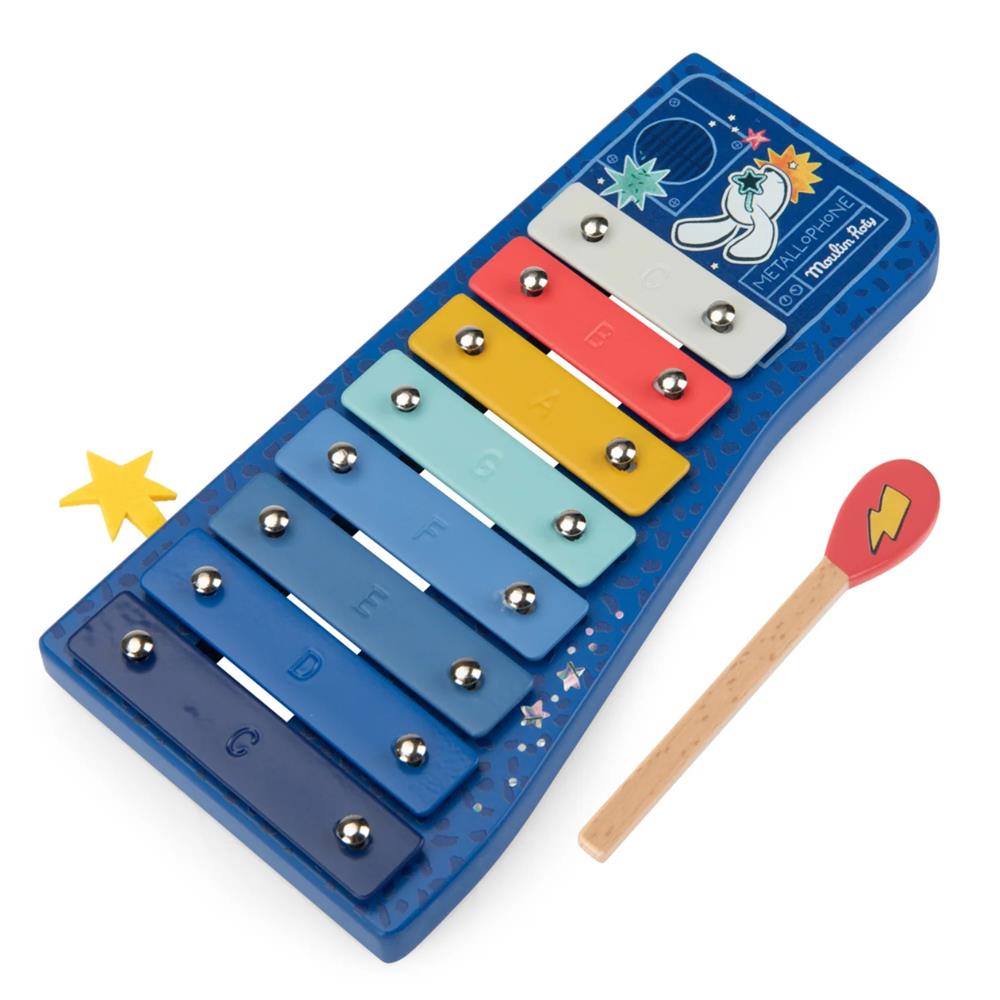 Per futuri musicisti, metallofono multicolore a 8 toni con mazzuolo. La sua base arrotondata in legno con illustrazioni della collezione Puce e Pilou. Sviluppa il ritmo, le capacità motorie e il risveglio musicale dei più piccoli. Materiale: legno e metallo. Lunghezza: 23,5 cm.