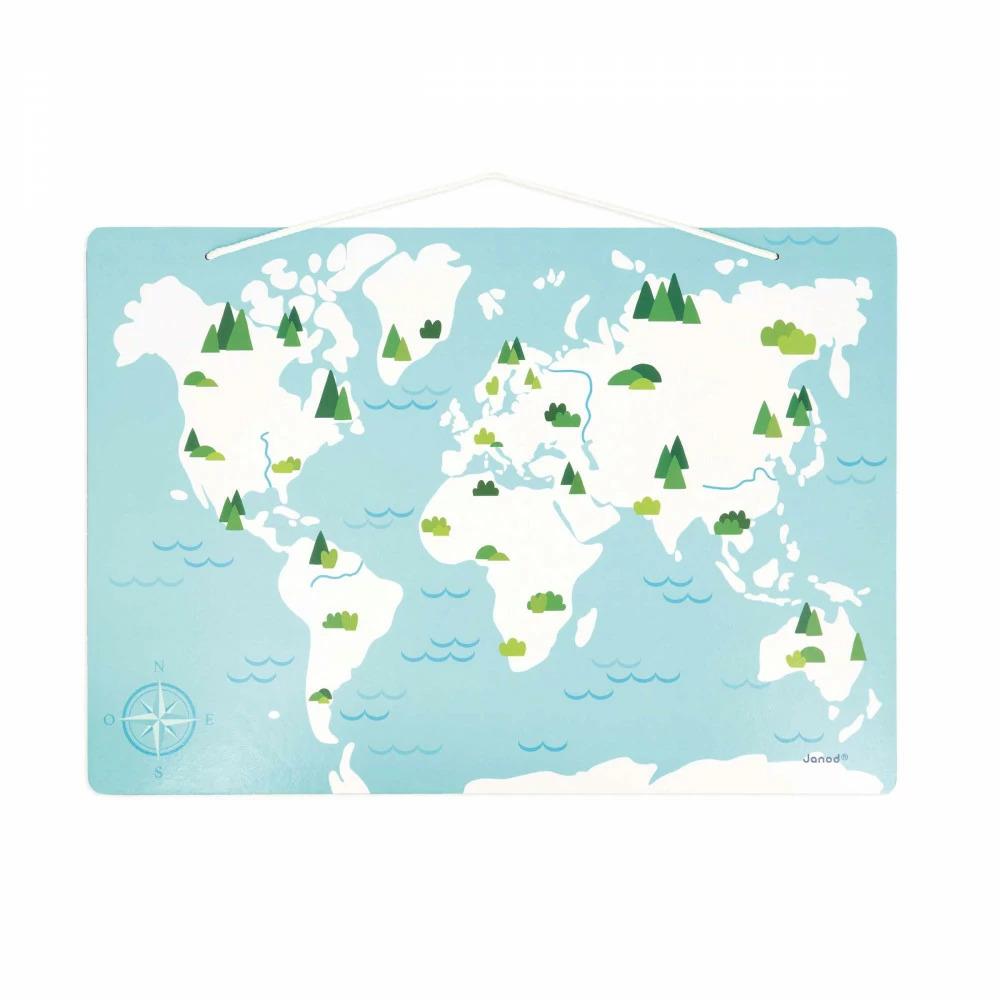 Ecco una magnifica mappa del mondo magnetica per imparare tante curiosità sugli animali e il loro habitat! Accessibile fin dai 2 anni di età, questo grande planisfero dai colori pastello conquisterà i piccoli amanti degli animali. Ci sono 40 cuccioli da posizionare nell'habitat giusto! Il grande poster educativo fronte-retro fornisce numerose informazioni per identificare questi animali e ampliare le proprie conoscenze. Le dimensioni degli animali magnetici sono perfettamente adatte alle mani dei più piccoli. Questa magnifica mappa del mondo può essere appoggiata su un tavolo o appesa grazie alla cordicella. I magneti inclusi possono essere usati anche in altri modi, ad esempio come base per sviluppare l'immaginazione dei più piccoli, che potranno inventare infinite storie con i loro nuovi amici. Giocattolo multisensoriale fabbricato in legno FSC®.