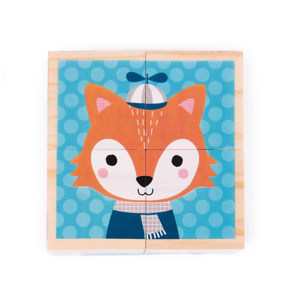 Ritratti della Foresta. Questo gioco di costruzione composto da 4 cubi in legno massiccio stimola il bambino a sviluppare coordinazione e spirito di osservazione. Le 6 illustrazioni dai colori pastello, raffiguranti 6 animali (coniglio, volpe, cane, gatto, cervo e orso), favoriscono l’immaginazione e la memoria visiva del bambino.