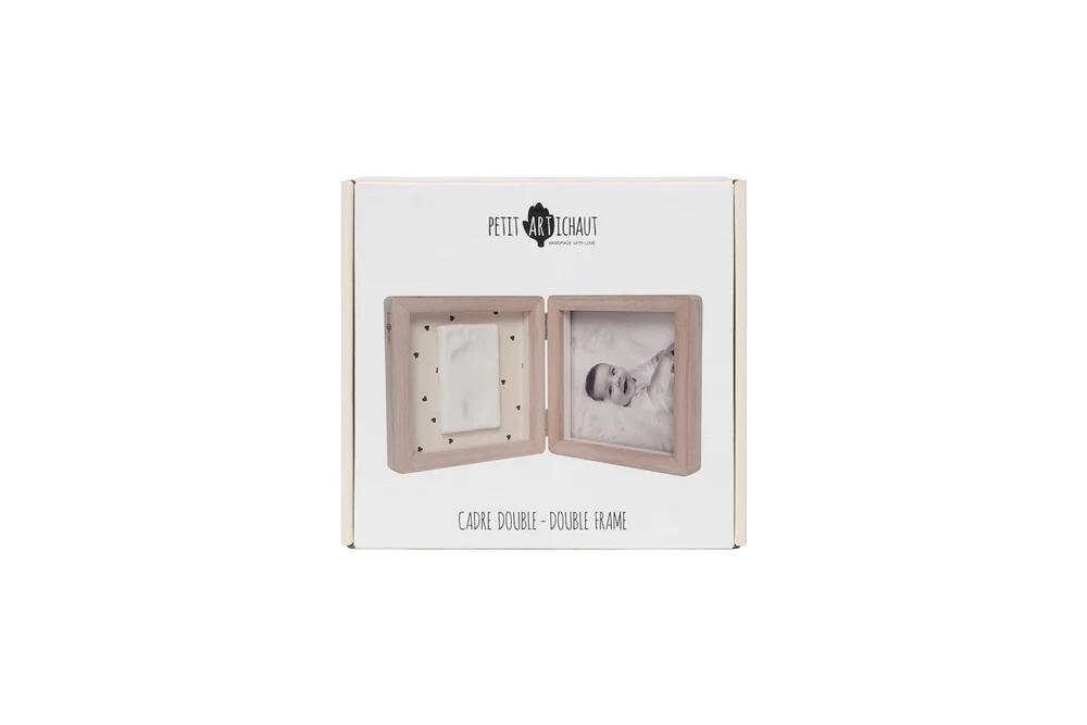 La Doppia cornice - Jolis Cœurs è una cornice in legno con 2 pannelli per mostrare una foto del bambino da un lato e la sua impronta dall'altro. La Doppia cornice - Jolis Cœurs offre un modo unico di esporre sia una foto sia un'impronta del bambino. Questa cornice da tavolo a due pannelli combina una foto da un lato con un'impronta dall'altro. Scegli il tuo design preferito utilizzando lo sfondo beige reversibile con o senza motivi a cuore. Il kit include argilla ipoallergenica, un rullo e istruzioni per creare facilmente l'impronta. Rapido e facile da usare. Sicuro per il bambino. Decorazione perfetta. Dimensioni: 34 x 2.3 x 17 cm.