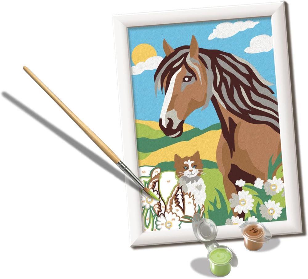 Creart Serie E - Amici nel prato di Ravensburger Creart Kids. Un gioco creativo per imparare a dipingere in modo facile ed intuitivo! Grazie all’immagine prestampata con numeri e bordi che indicano il colore da utilizzare, potrai realizzare degli splendidi acquerelli! I colori a base d’acqua sono pronti all’uso ed è incluso anche un supporto per evitare rovesciamenti accidentali. Con la cornice inclusa potrai mettere in bella mostra il tuo capolavoro dove vuoi. Un’attività rilassante che esercita la manualità fine e la concentrazione.