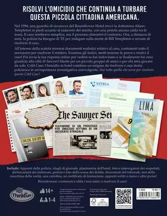 Vesti i panni di un detective che si occupa di casi irrisolti. In ThinkFun Cold Case: Check in per un omicidio riaprirai un raccapricciante caso irrisolto del 1994, quando un rispettato scienziato fu trovato morto nella sua stanza d'albergo negli Stati Uniti. Con una collezione di prove realistiche di alta qualità, esaminerai ogni dettaglio per risolvere il caso. Chi aveva un movente? Cosa non torna?