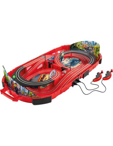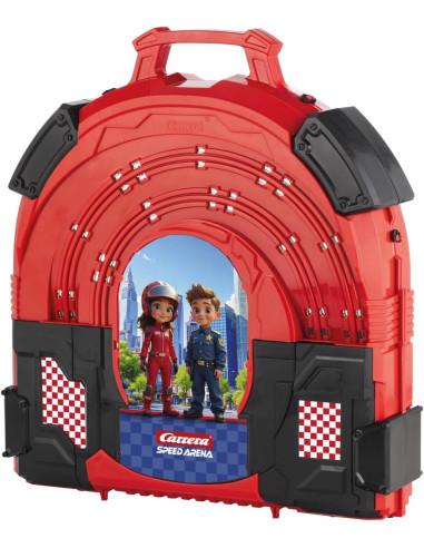 Nella Carrera First Speed ??Arena, la velocità è tutto. In questo inseguimento con la polizia, la polizia insegue la macchina superveloce Green Flash. La domanda, ovviamente, è chi è il più veloce? La Speed ??Arena è perfetta da portare ovunque, così puoi gareggiare in ogni luogo. Quando la richiudi, la tua pista da corsa diventa una valigia facile da trasportare. La Speed ??Arena funziona con 4 batterie AA (non incluse).
