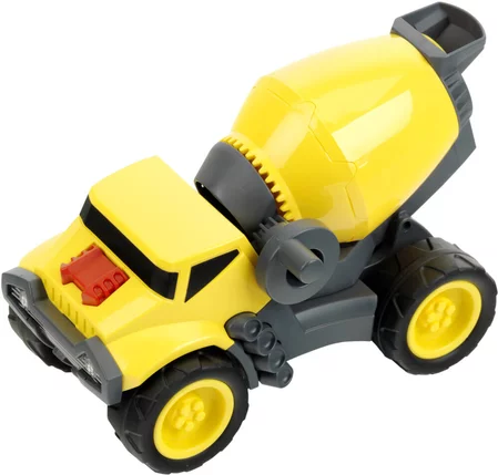 Quale piccolo costruttore non sogna di avere la propria betoniera? E se riesce persino a far girare il tamburo, il divertimento è assicurato. Basta caricare la sabbia nel tamburo attraverso la tramoggia, girare la manovella e via! Anche i bambini più piccoli possono azionare la manovella e, grazie alla sua solida costruzione, questo potente veicolo diventerà presto un compagno affidabile e fedele per i piccoli costruttori. Scala 1:24. Dimensioni: 23 x 14 x 11 cm.