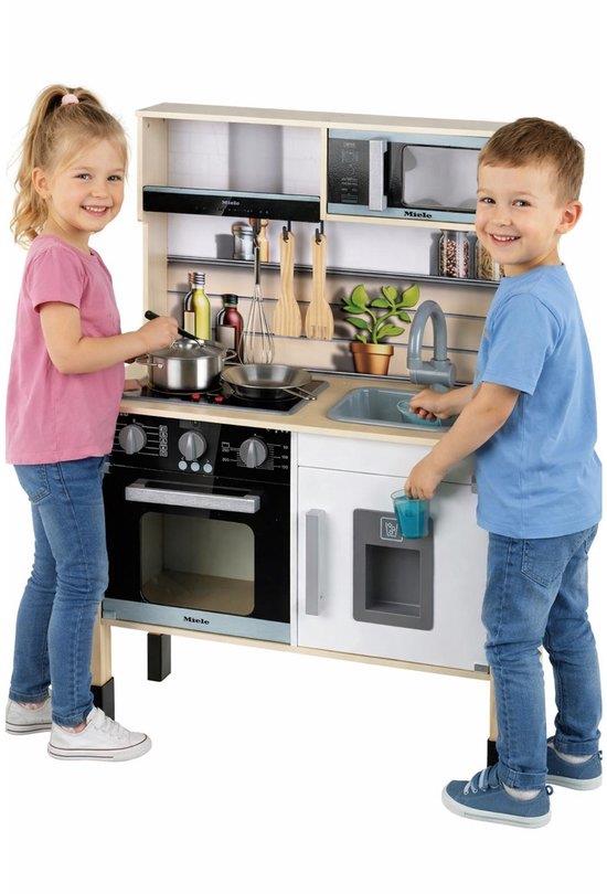 In questa cucina giocattolo in legno di alta qualità, i piccoli appassionati di cucina non hanno limiti. Oltre al piano cottura e al forno a microonde, c'è anche un fornello che li conquisterà sicuramente: riproduce una vera cucina con luci ed effetti sonori! E proprio come dopo un pasto, c'è tempo anche per il prossimo: tutti gli alimenti possono essere conservati in frigorifero e i piatti lavati nel lavello, facilissimo da rimuovere e pulire. Un vero punto forte, e certamente non meno importante, è il moderno distributore di ghiaccio.