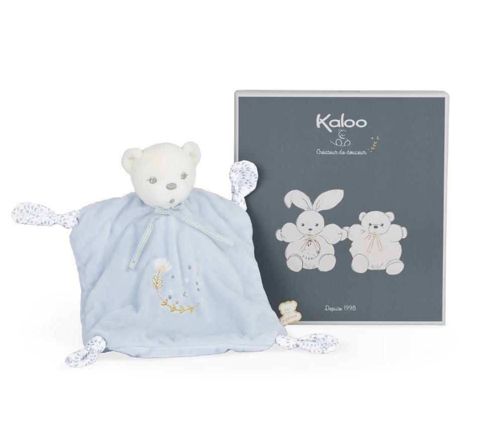 Questo orso doudou di colore azzurro da 24 cm è l'amico ideale per morbide coccole ma anche per aiutare il bambino con i dentini grazie ai 4 nodi. È impreziosito da ricami e un tocco dorato per un finale sofisticato ed elegante. È la scelta migliore per un regalo morbido e prezioso. Lavabile in lavatrice. Presentato in una graziosa confezione regalo che puoi personalizzare con un messaggio nello spazio assegnato sotto la copertina.