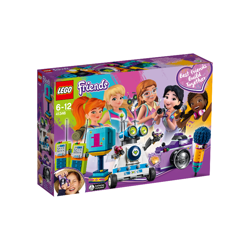LEGO Friends La scatola dell'amicizia - 41346. Contiene 5 accessori LEGO® Friends costruibili a grandezza naturale: un microfono, una fotocamera, un trofeo, una coppia di walkie-talkie e un robot.