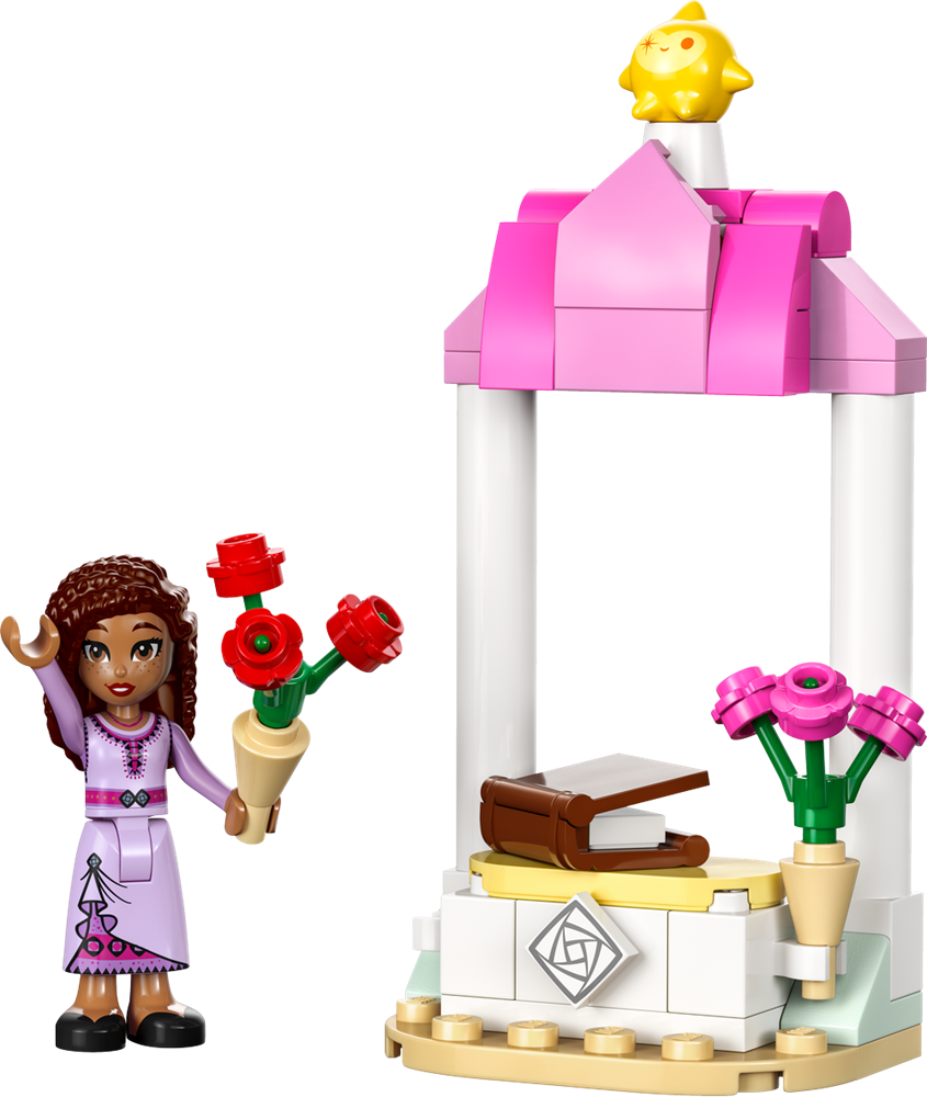 Accendi l’immaginazione dei fan di Wish Disney con questo set costruibile, contenente un banco di benvenuto con un libro degli ospiti, 2 mazzi di rose e una mini-doll di Asha LEGO®
