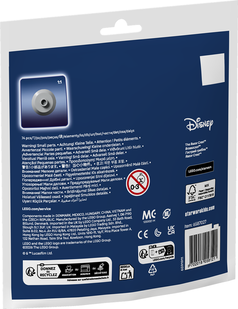 LEGO Star Wars Mini-modello di Razor Crest™. In vendita questo esclusivo mini-modello della Razor Crest, l'iconica cannoniera d'assalto corazzata di Din Djarin. Nonostante le dimensioni ridotte, il modello cattura perfettamente la silhouette e i motori della nave originale.