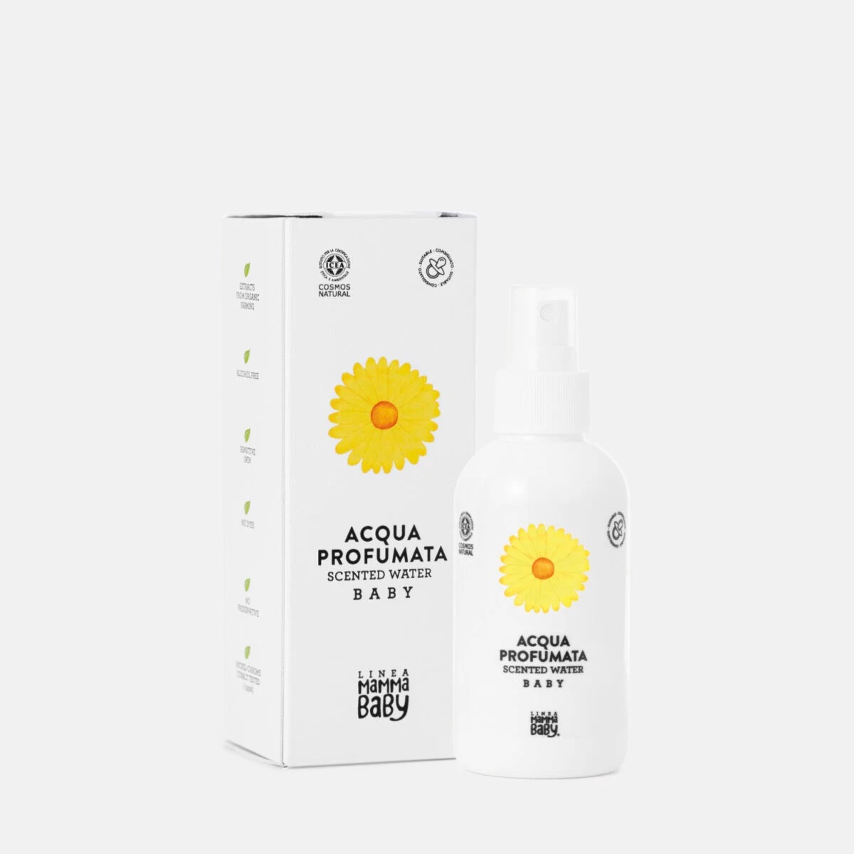 L’acqua profumata baby, per il corpo, con estratti da agricoltura biologica di calendola. Rinfresca la pelle, donando una sensazione di sollievo e profumo. Adatta alle pelli più delicate e sensibili dei bambini, aiutando a mantenerla morbida e profumata.