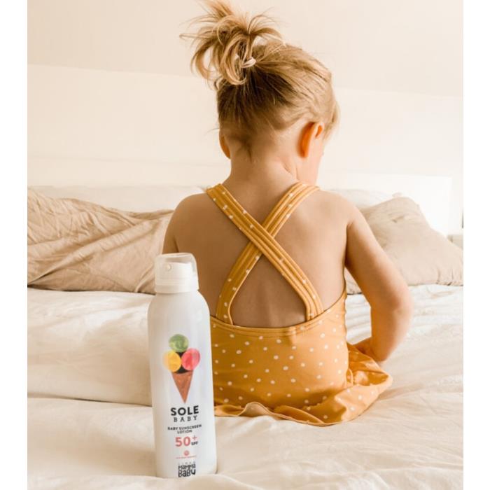Il Sole Baby SPF?50 di Mamma baby è un’emulsione spray pensata per proteggere la pelle delicata di bimbi e adulti fin dai primi giorni di sole. La sua formula trasparente, arricchita con olio di mandorle dolci biologiche e estratto di Hamamelis, offre una protezione ampia UVB-UVA in modo efficace e naturale. È resistente all' acqua, dermatologicamente testato su pelli sensibili, senza parabeni.