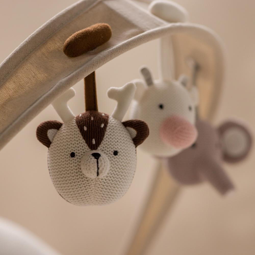 Riduttore per i primi mesi di vita - Toy Bar con 3 animali di peluche - Carillon con tre melodie. Materiale del telaio: alluminio. Materiale della fodera: poliestere. Dimensioni (lxAxP): 47 x 85 x 22 cm. Peso: 3,3 kg. Portata max: 9 kg. Alimentazione del carillon: 4 batterie (1,5 V AA non incluse).