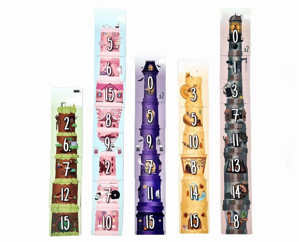 In Le 5 Torri, siete mastri architetti che devono costruire le torri più alte, una per colore. Per ottenere le carte necessarie, dovrete partecipare a un’asta: chi rilancia di più, prende tutte le carte dichiarate. Ma attenzione, perché dovete poterle posizionare: ciascuna sulla torre del proprio colore e di valore inferiore a quella precedente (tranne l’8 e il 9 che hanno delle eccezioni). Prima di posizionare, potete anche togliere la carta più in cima per far salire la torre maggiormente, ad eccezzione dello “0”, l’ultima. La partita termina dopo la seconda volta che si esaurisce il mazzo di carte. Si procede al calcolo: le carte di torri completate forniscono più punti. Contenuto: 110 carte (56x87mm). Giocatori: 2-5. Durata: 15-30 min.