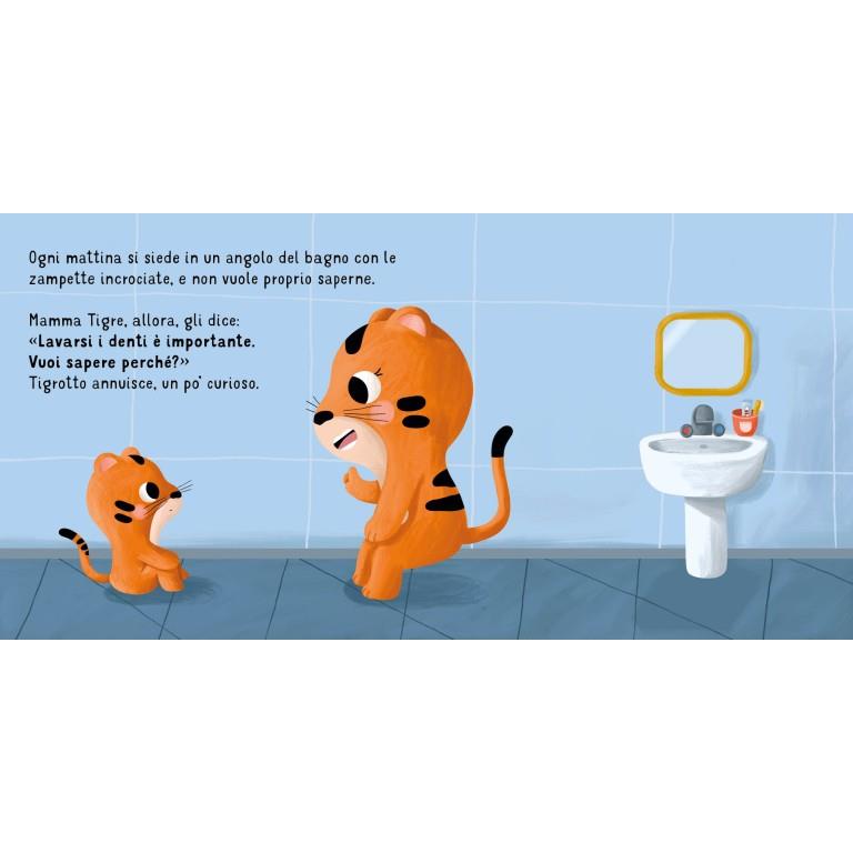Mi lavo i denti. Pensato per accompagnare i bambini nella scoperta di questa routine quotidiana, il libro utilizza un linguaggio chiaro e adatto alla loro età. Le illustrazioni e la narrazione incoraggiano i più piccoli a seguire l’esempio di Tigrotto, trasformando l’igiene orale in un’abitudine semplice e naturale. Questo libro è stato scritto con il supporto di Valentina Paolucci, pediatra, per offrire ai genitori uno strumento utile e affidabile per introdurre il tema della cura dei denti in modo sereno e positivo. Lavarsi i denti è un gesto quotidiano importante, ma per i più piccoli può sembrare noioso o difficile da capire. Questo libro racconta la storia di Tigrotto, un cucciolo che non ha voglia di spazzolarsi i denti, fino a quando la sua mamma gli spiega perché è così importante prendersene cura. Attraverso semplici spiegazioni e un approccio giocoso, Tigrotto scoprirà come lavare bene i denti e renderlo un momento piacevole da condividere. Pagine: 20. Autore: G. Pesavento & Ç. Odabasi.