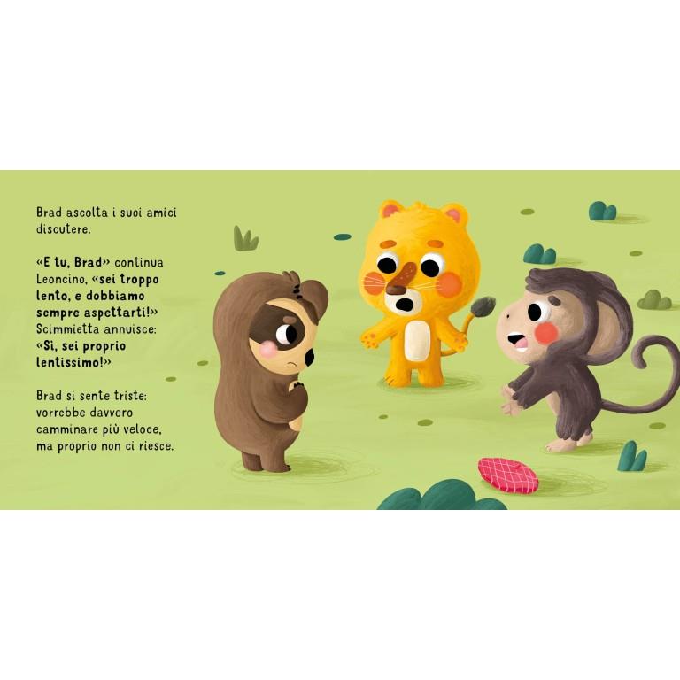 Rispettiamoci. Attraverso una narrazione semplice e coinvolgente, questo libro aiuta i bambini a comprendere il valore della diversità e l’importanza di rispettare i tempi e le caratteristiche di ciascuno. Le illustrazioni vivaci e la storia dolce e rassicurante incoraggiano i piccoli lettori a riconoscere le proprie qualità e ad accettare quelle degli altri. Scritto con il supporto di Elena Cortinovis, pedagogista esperta in disciplina dolce, il libro offre uno strumento utile ai genitori per parlare di empatia, rispetto e collaborazione in modo sereno e naturale. Ogni bambino è unico e speciale, con il proprio ritmo e il proprio modo di affrontare il mondo. Questo libro racconta la storia di Brad, un piccolo bradipo che si muove con calma, mentre i suoi amici Leoncino e Scimmietta sono sempre di corsa. A volte, le loro differenze sembrano un ostacolo, ma presto scopriranno che ognuno di loro ha qualcosa di prezioso da offrire. Pagine: 20. Autore: G. Pesavento & Ç. Odabasi.