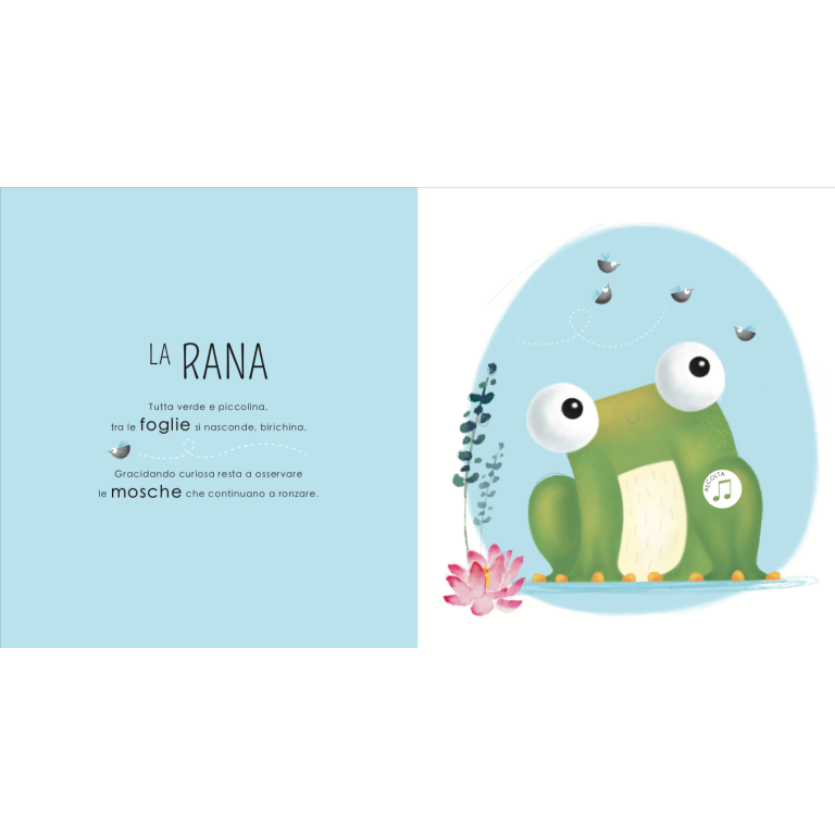 Chi c'è nella giungla? Un libro sonoro con illustrazioni dai delicati colori pastello e dolci rime per far conoscere ai più piccoli i versi degli animali. Tra la fitta vegetazione della giungla si aggirano tantissimi animali: scopri quali sono sfogliando le pagine di questo libro e premi i bottoni per conoscere i loro versi! Pagine: 12. Autore: V. Manuzzato & V. Bonaguro.