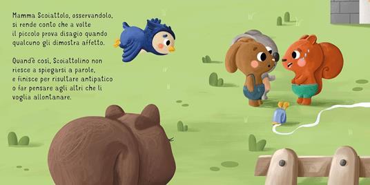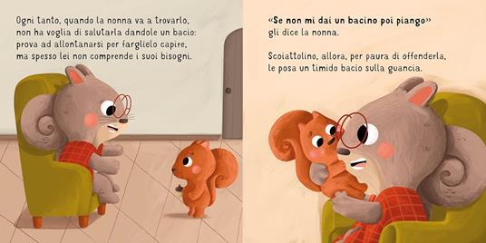Una storia delicata e preziosa che affronta un tema importante: il diritto dei bambini a dire “no” quando non vogliono baci o abbracci. Scoiattolino, infatti, impara a esprimere i propri sentimenti con l’aiuto di un mantello speciale, creato da Mamma Scoiattolo per far capire agli altri che a volte ha bisogno di spazio. Questo racconto aiuta i bambini a comprendere che il loro corpo è solo loro e che hanno il diritto di decidere come e quando ricevere gesti di affetto. Allo stesso tempo, insegna agli adulti e ai compagni a rispettare i confini degli altri, promuovendo un messaggio fondamentale: il consenso va imparato fin da piccoli. Con parole semplici e immagini piene di dolcezza, questo libro accompagna i bambini nella scoperta del rispetto di sé e degli altri, aiutandoli a crescere consapevoli del valore del proprio corpo e delle proprie emozioni. Un racconto utile e rassicurante per parlare di affetto, autonomia e rispetto in modo delicato e accessibile ai più piccoli. Età di lettura: da 1 anno.