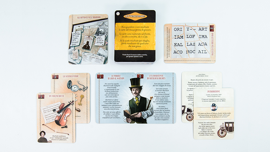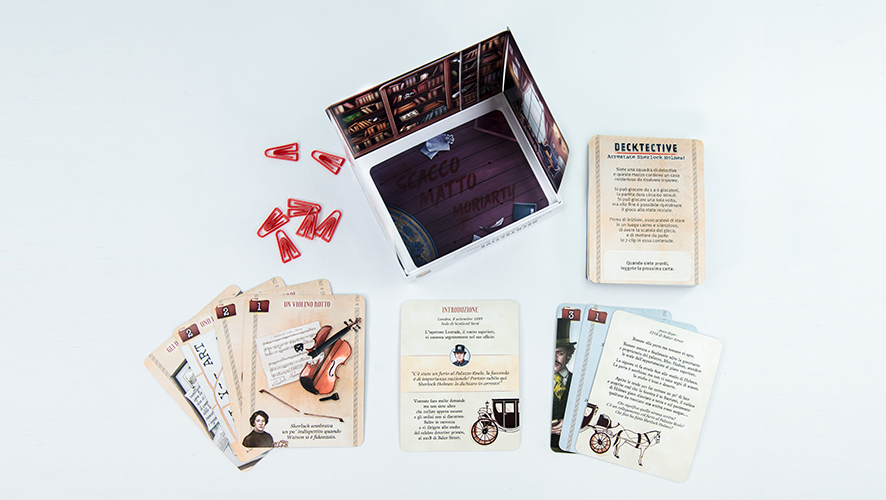 Decktective - Arrestate Sherlock Holmes! Un giallo in formato tascabile, con una scena del crimine in 3D! Una misteriosa scritta imbratta il pavimento del 221B di Baker Street. Ha forse a che fare con il furto al Palazzo Reale? E l’arresto del più celebre detective di tutti i tempi è davvero la soluzione giusta? Per iniziare, bisogna scoprire che fine ha fatto Sherlock! Raccogliete gli indizi: documenti, tracce, testimonianze… e risolvete il mistero! In un Deck di carte, un caso misterioso per veri detective. Contenuto: 59 carte extra large, 7 clip colorate. Giocatori: 1-6. Durata: 60 min.